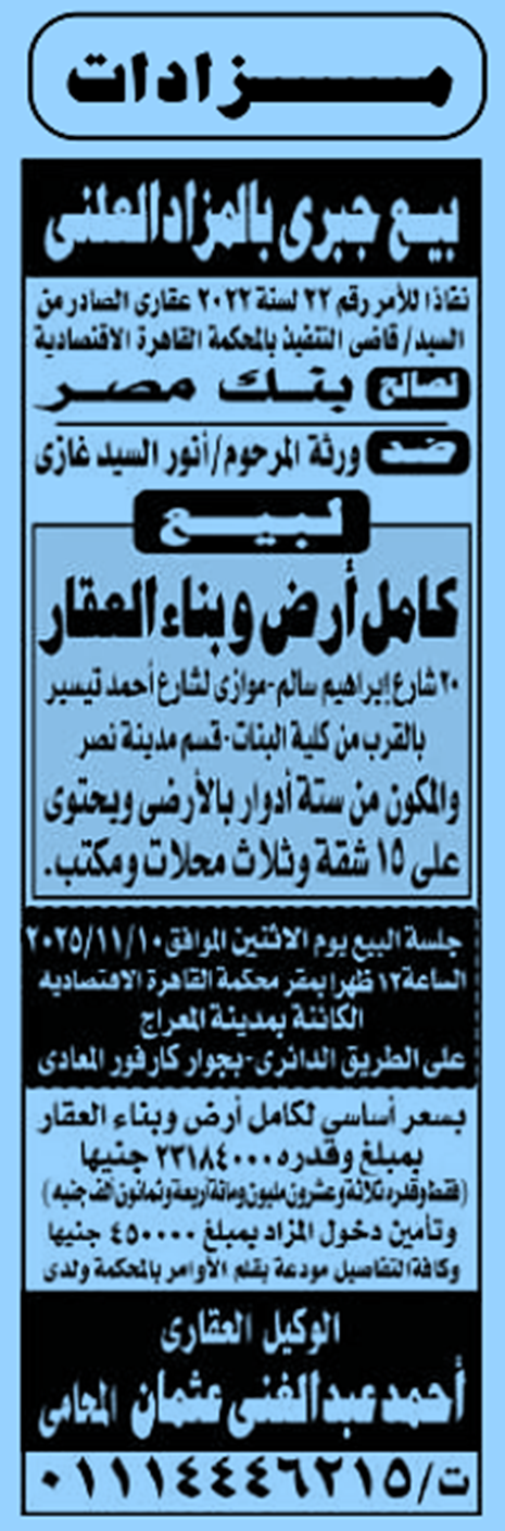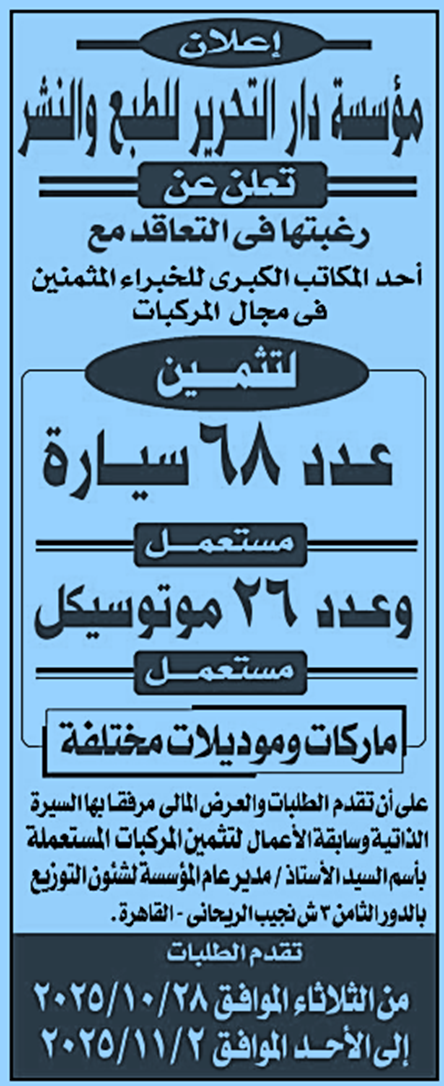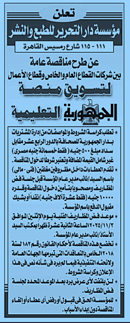 اعلانات العـدد الأسبوعـي لجريدة الجمـهـورية اليوم الخميس 30 أكتوبر 2025