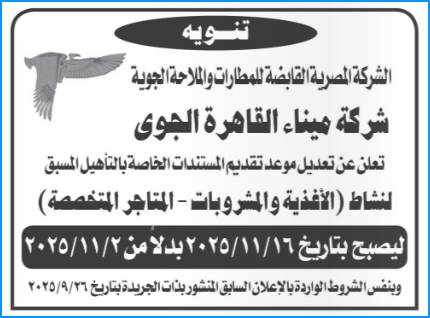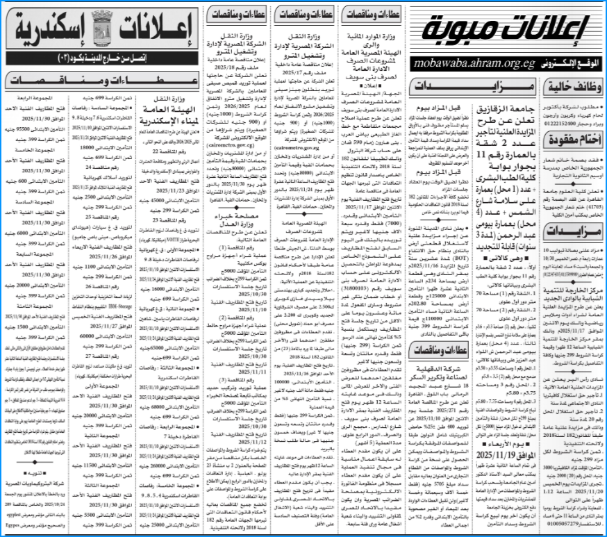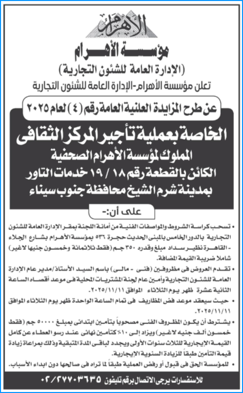 اعلانات جـريدة الأهرام ليوم الاثنين 27 أكتوبر 2025